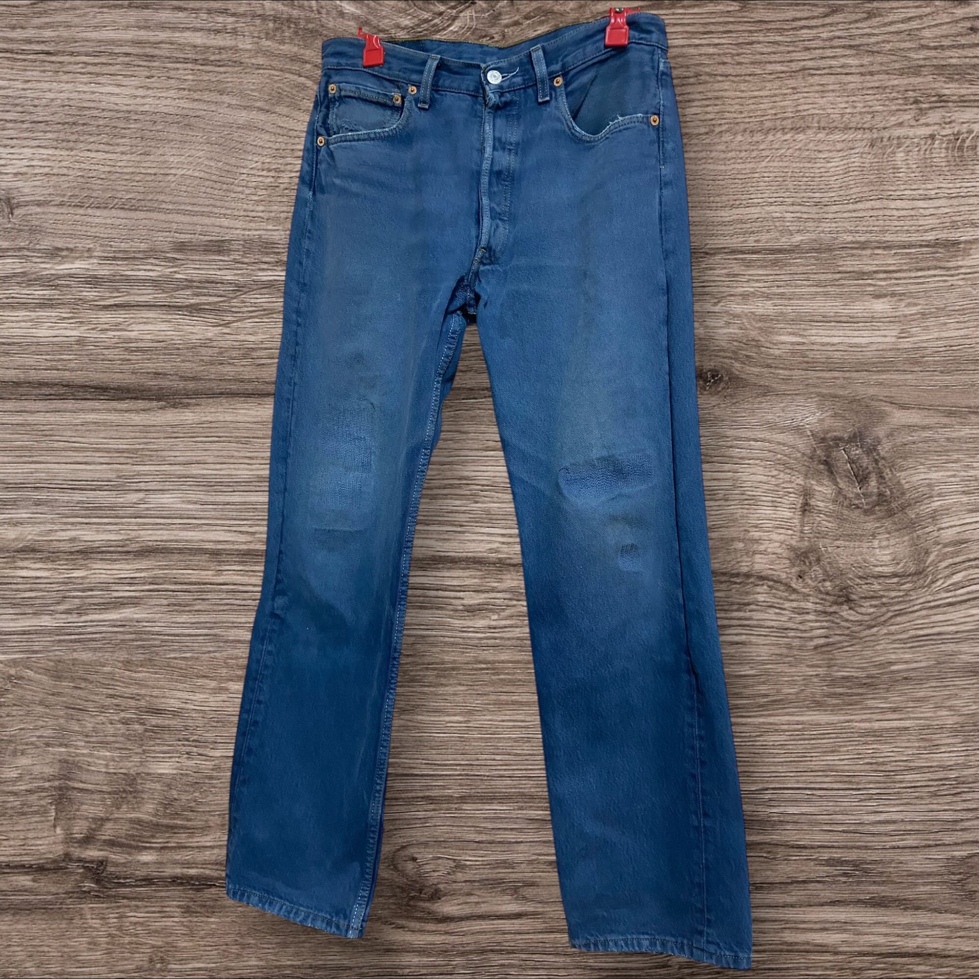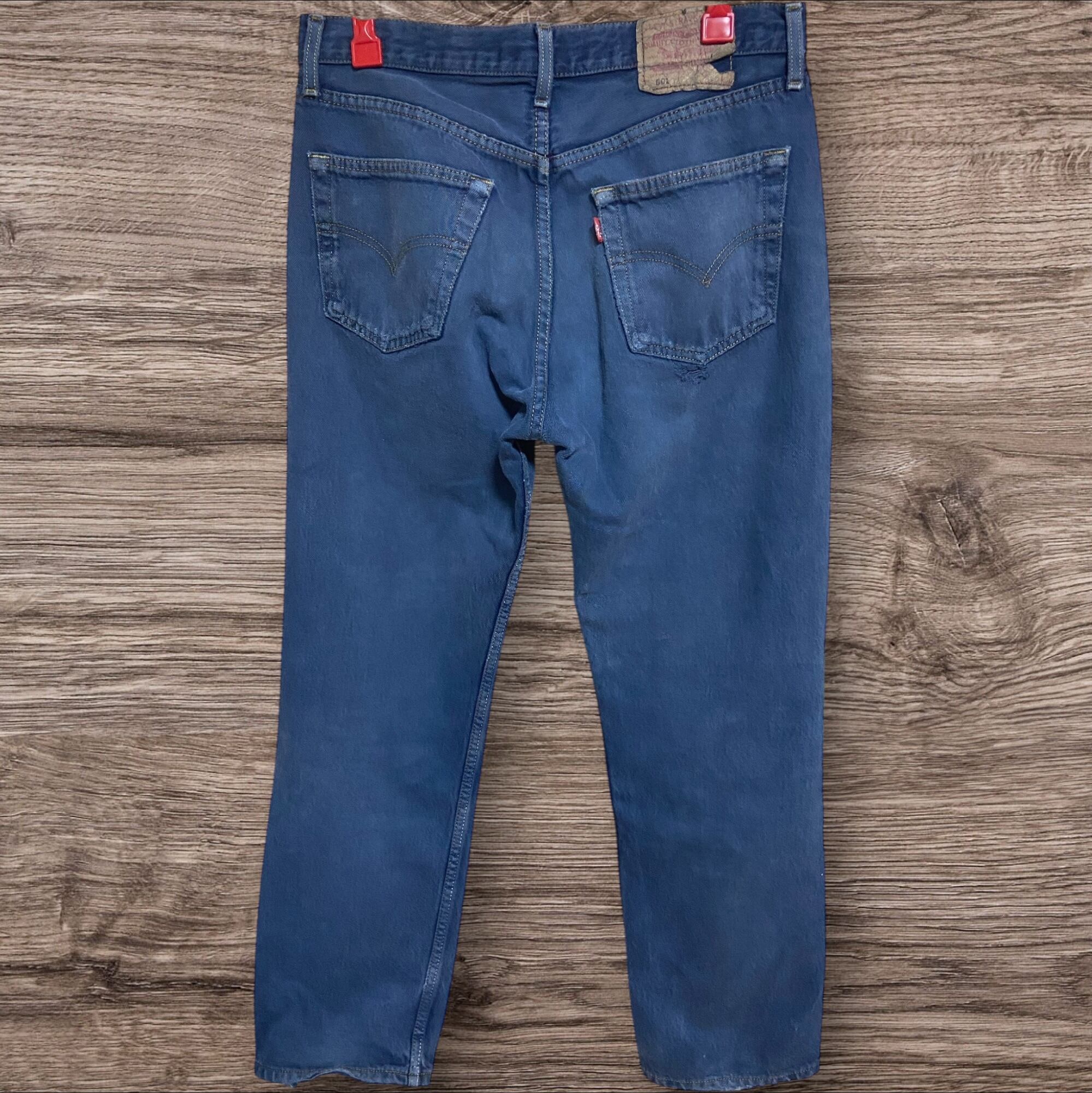 リーバイスの501ジーンズ!かなり使い古されていい感じに仕上がってます!古着好きにはたまらないとてもいい味が出てます!珍しいカラーでタイトな感じのスタイルで着るのがいいでしょう。バックのタグはかなり傷んでてそれもまたいい味出してます。ウエスト38被写体は171cm体重68kgです
