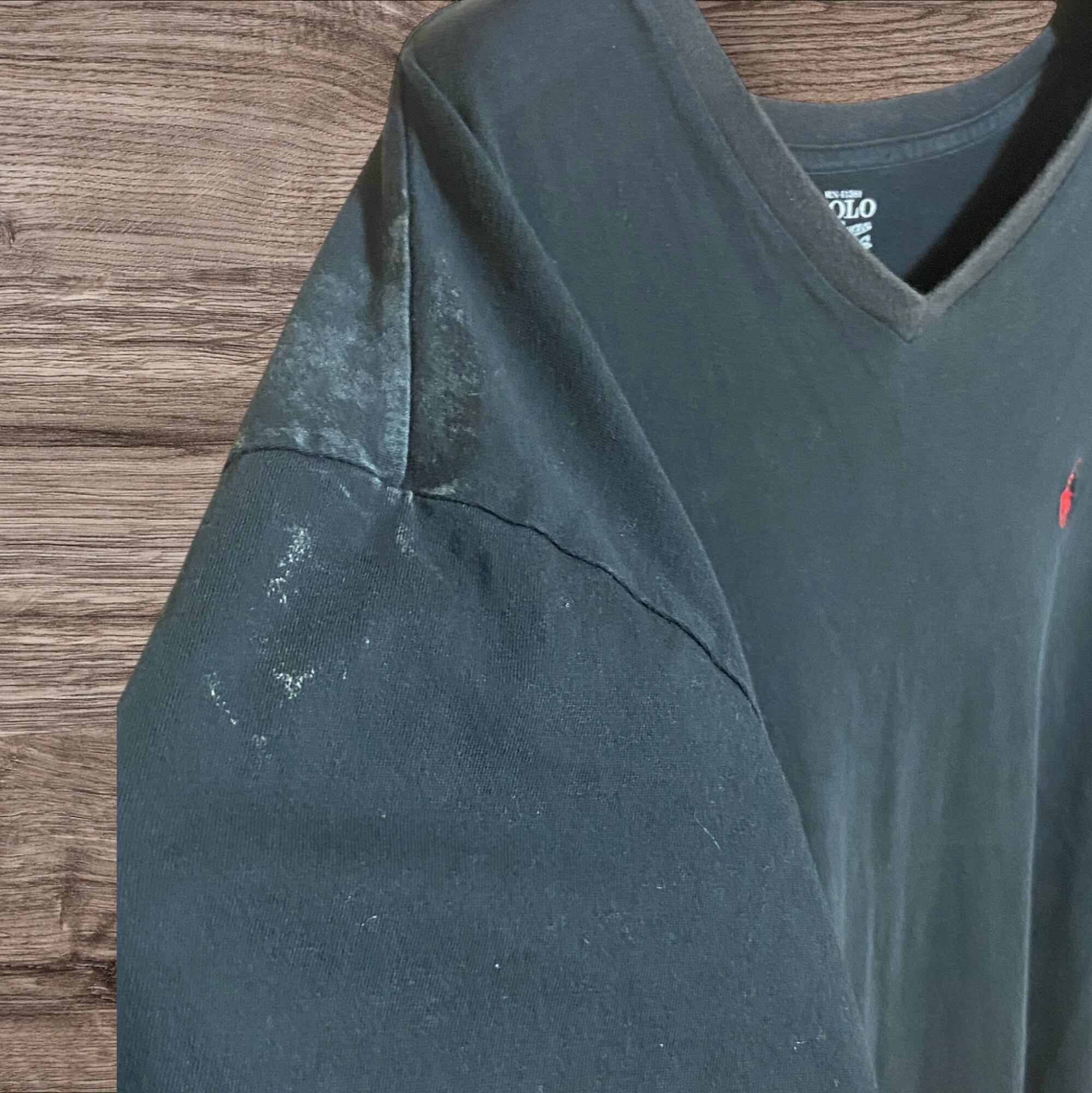 ポロラルフローレンのVネック半袖Tシャツです方にペンキのような汚れてありますがそれもまた味出てます!サイズ2XLとサイズ大きめなのも嬉しいです